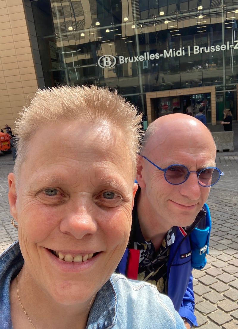 Op het station verzamelen we op perron 5A. En de reisorganisator Frans Staal (FS) wenst ons daar een prettige reis. Om 9:03 uur precies vertrekt onze trein. We missen dan nog één deelnemer. Jacques gaat mee in de plaats van de oudste deelnemer, die op het laatste moment moet afhaken. Jacques stapt in Breda bij ons in de trein op weg naar Brussel Zuid. In de trein maken we een beetje kennis met de groep.
